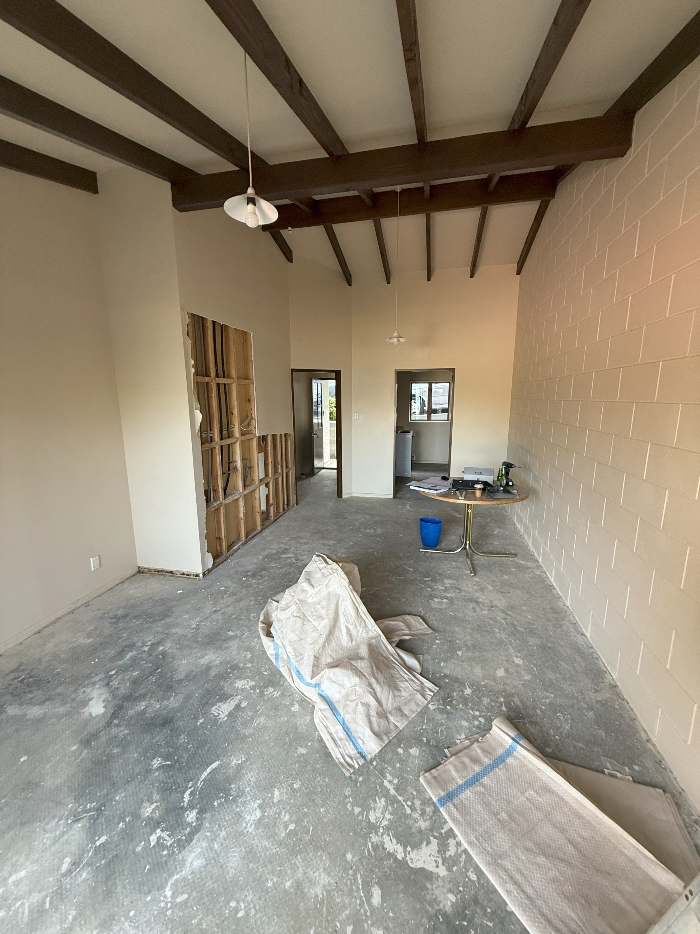 Working with the existing structure and exposed timber beams all the internal walls were insulated and lined for improved sound proofing.
